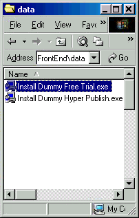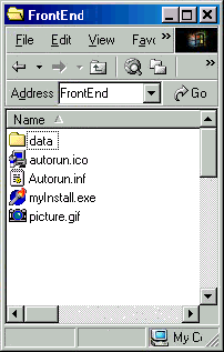 b) inserisci nella directory "data" tutte le cose che vuoi rendere disponibile all'utente finale. Il programma supporta .exe, .hlp, .zip, .chm e .pdf (così potete usare questo software per creare un CD professionale, anche i CD VisualVision CD, venduti tramite Internet e nei negozi, usano 4Menu). Dai ai file nomi significativi, in altre parole se vuoi che l'utente clicchi su un pulsante "Installa Hyper Publish" allora salva il rispettivo file con "Install Hyper Publish.exe", non qualcosa di strano tipo abc_en3hhg.exe. Il massimo numero di file per la versione gratis è 4 (usa CDFrontEnd se hai bisogno di creare un'interfaccia più complessa).