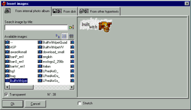 La finestra di inserzione immagini; si possono riutilizzare facilmente le immagini già presenti nell'ipertesto...